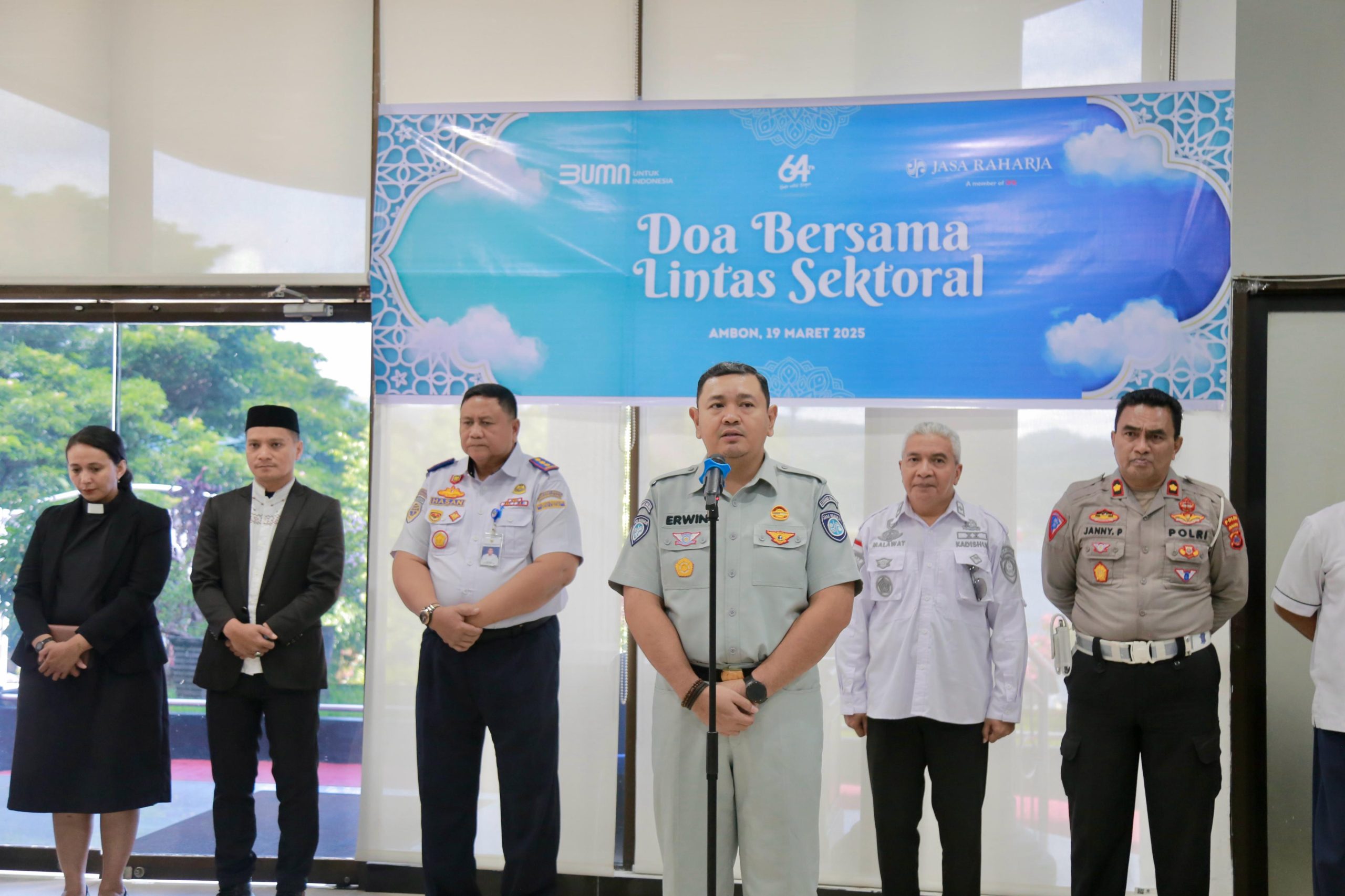 REDAKSITIMOR.COM, Ambon – Dalam rangka memohon perlindungan dan keselamatan bagi masyarakat yang akan melakukan perjalanan mudik Lebaran 1446H Tahun 2025, PT Jasa Rahrarja Kantor Wilayah Maluku menggelar doa bersama dengan seluruh instansi terkait di Kantor Jasa Raharja pada Rabu, 19/03/2025.