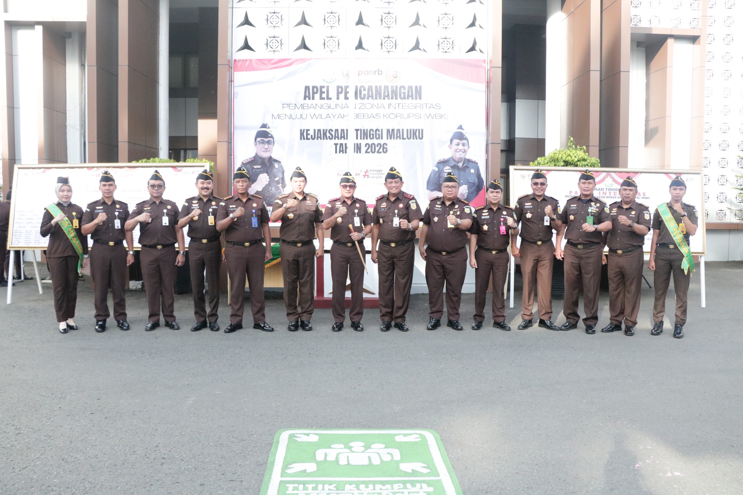 Apel Pencanangan Pembangunan Zona Integritas menuju WBK/WBBM tahun 2026 ini, dihadiri juga oleh Wakajati Maluku Adhi Prabowo, Asisten Pembinaan Cahyadi Sabri, Asisten Intelijen Diky Oktavia, Asisten Tindak Pidana Umum I Ketut Suwardi, Asisten Tindak Pidana Khusus Radot Parulian, Asisten Perdata dan Tata Usaha Negara Raden Sudaryono, Asisten Pemulihan Aset Devi F. Muskitta, Asisten Pidana Militer Kolonel Chk Satar M. Hutabarat, Asisten Pengawasan Bobby Ruswin, Kabag Tata Usaha Ariyanto Novindra, para Koordinator serta para Pegawai Jaksa dan Tata Usaha pada Kejaksaan Tinggi Maluku.