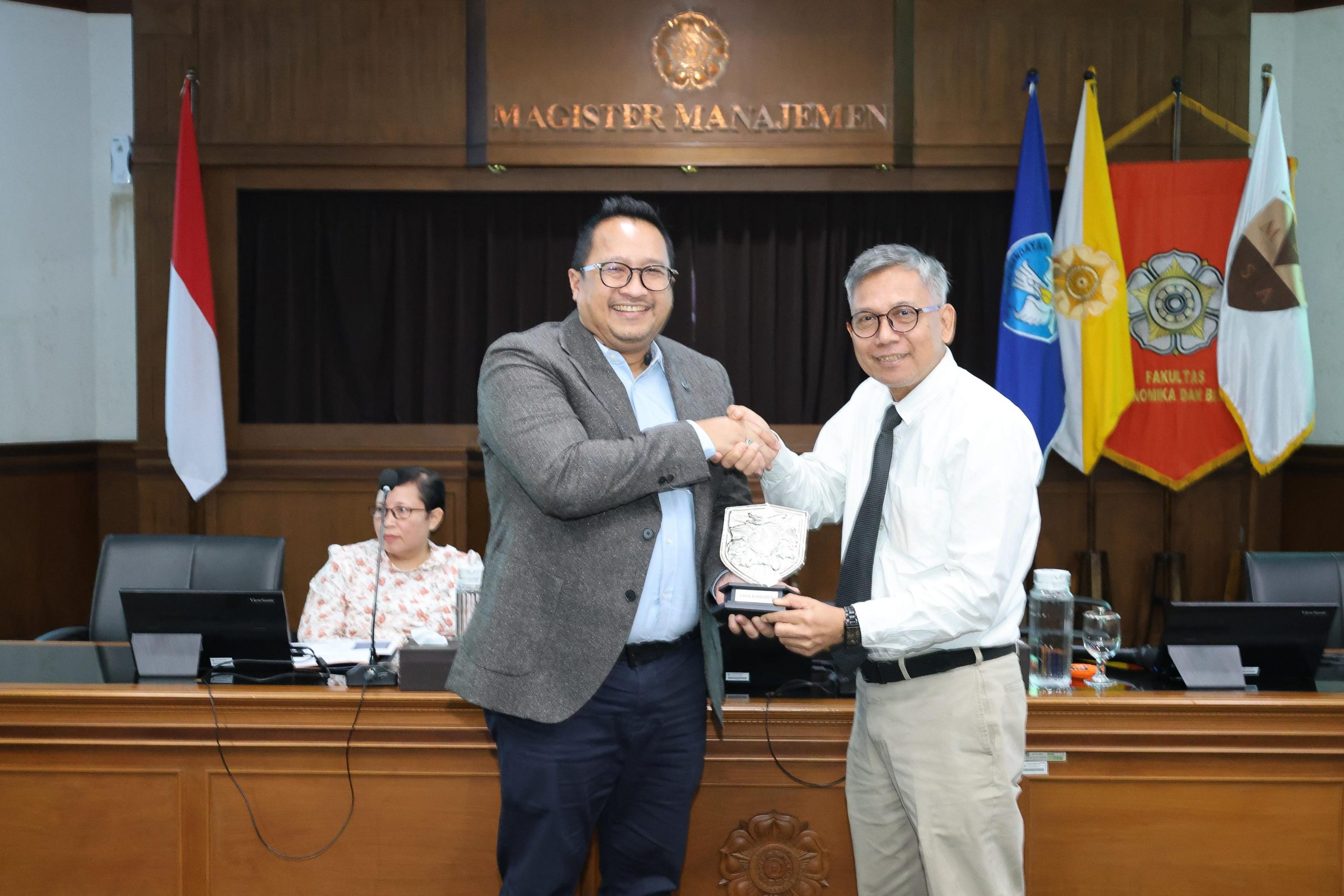 Sementara itu, Guru Besar MBA FEB UGM Kampus Yogyakarta, Prof. Amin Wibowo, Ph.D., dalam sambutannya menyampaikan apresiasi atas kehadiran Harwan sebagai praktisi. Menurutnya, kehadiran praktisi dalam perkuliahan memberikan kesempatan bagi mahasiswa untuk memperoleh first-hand experience terkait implementasi Business Ethics for Sustainability di dunia industri.