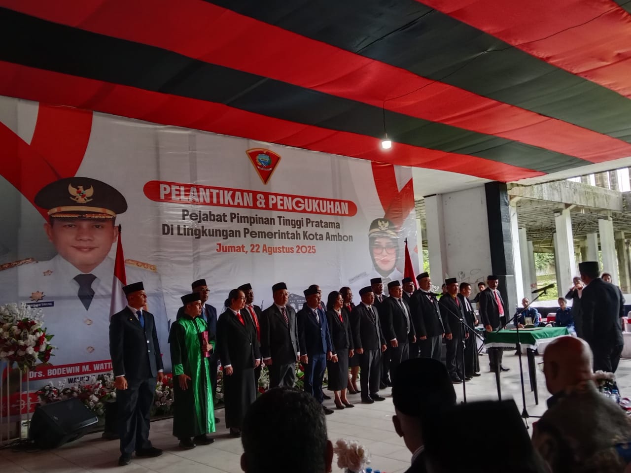 Pelantikan ini berdasarkan Surat Keputusan Wali Kota Ambon Nomor 3337 Tahun 2025 tentang Pemberhentian dan Pengangkatan Pegawai Negeri Sipil dari dan dalam Jabatan Pimpinan Tinggi Pratama.